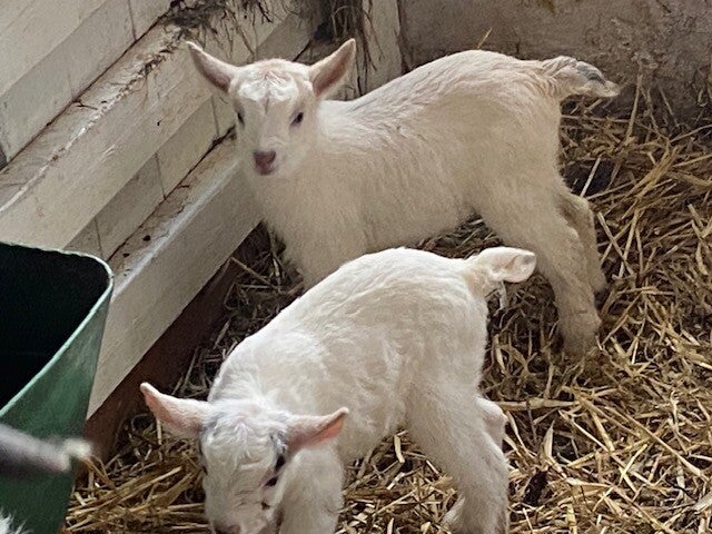 Et andet tegn på at det er forår er, at en af vores geder har fået 2 kid, og en af kaninerne har fået unger.
